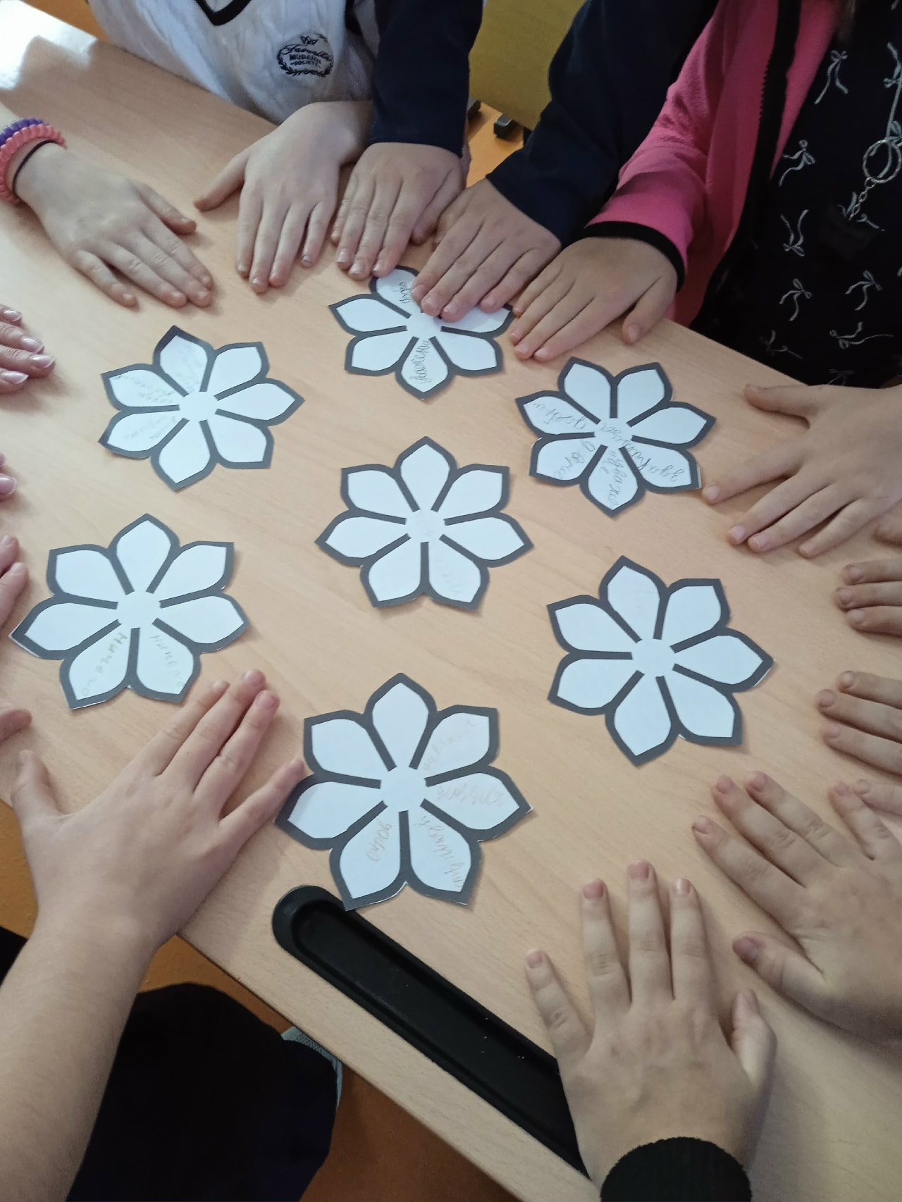 В завершении мероприятия дети на лепестках цветка написали, что такое толерантность и сложили красивый цветок.