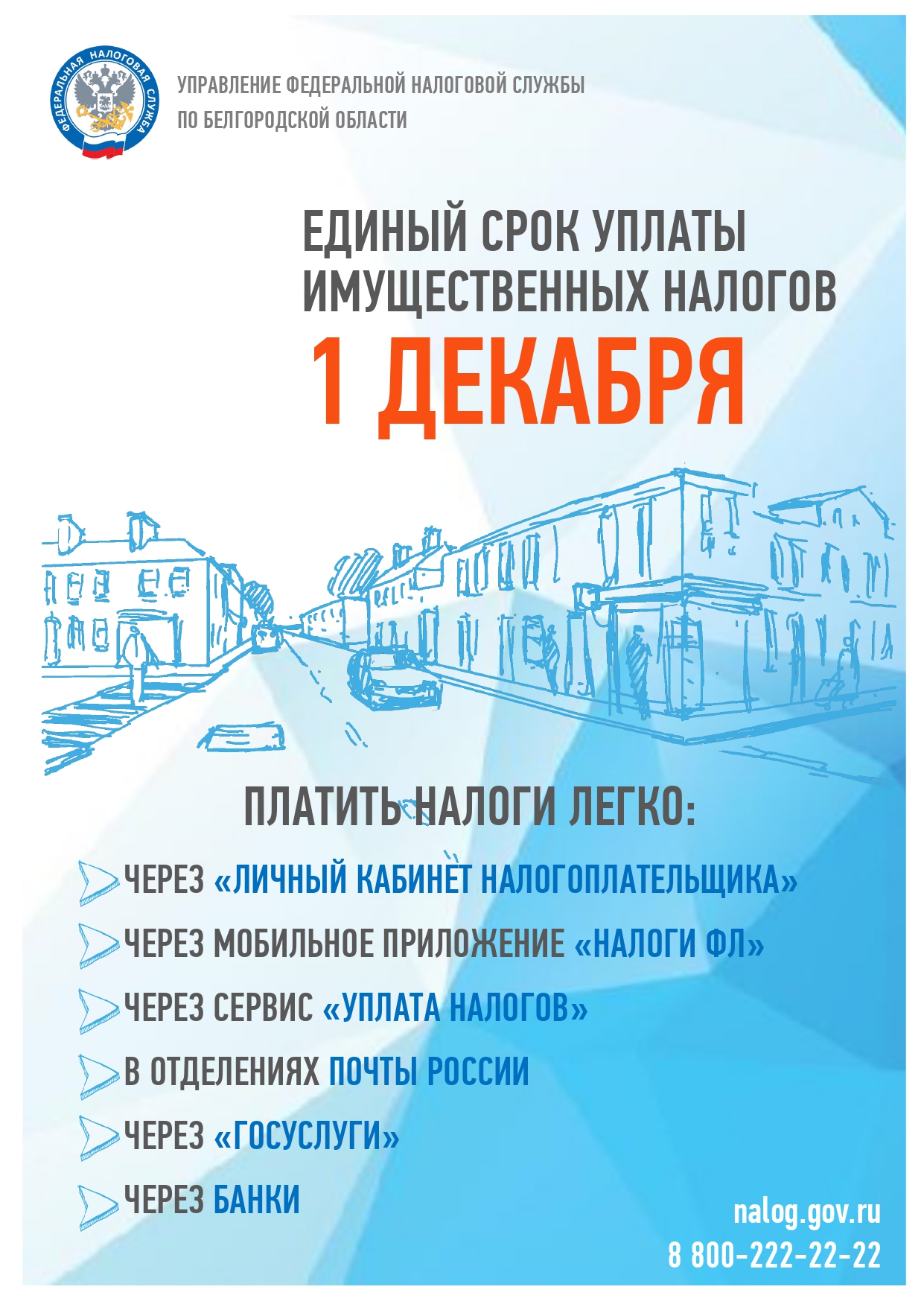1 декабря - срок уплаты имущественных налогов физических лиц: транспортный налог земельный налог налог на имущество