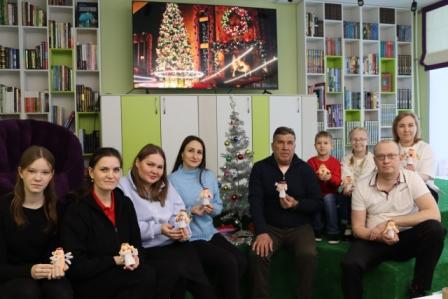 Активные семьи Зуевки собрались в уютном зале библиотеки на мастер класс под названием "Рождественская игрушка".