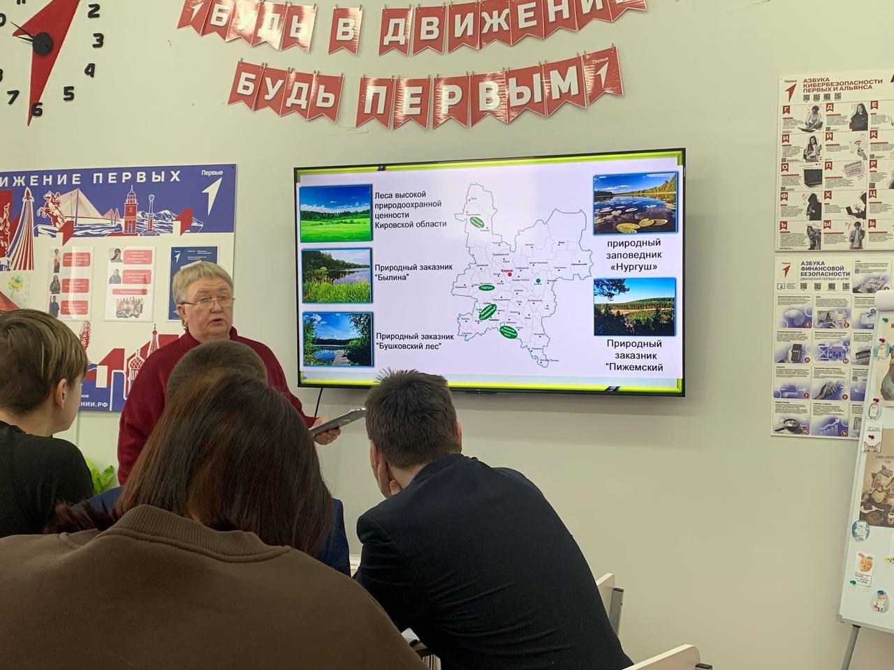 В Советском районе Кировской области есть экологическая тропа «Вятская Швейцария». Это территория государственного природного заказника «Пижемский», а также комплексы, пещеры и экологические тропы. Среди охраняемых объектов природы Чимбулатский ботанико-геологический комплекс, Береснятский трехкаскадный водопад, скала «Часовой», Зараменская пещера, Буржатский утес и др. Узнали об особо охраняемых памятниках природы и в Зуевском районе. Это окрестности села Рябово, восемь плодоносящих кедров и старые посадки лиственниц в д.Махни около с.Сезенево, Васнецовская трехсотлетняя липа.