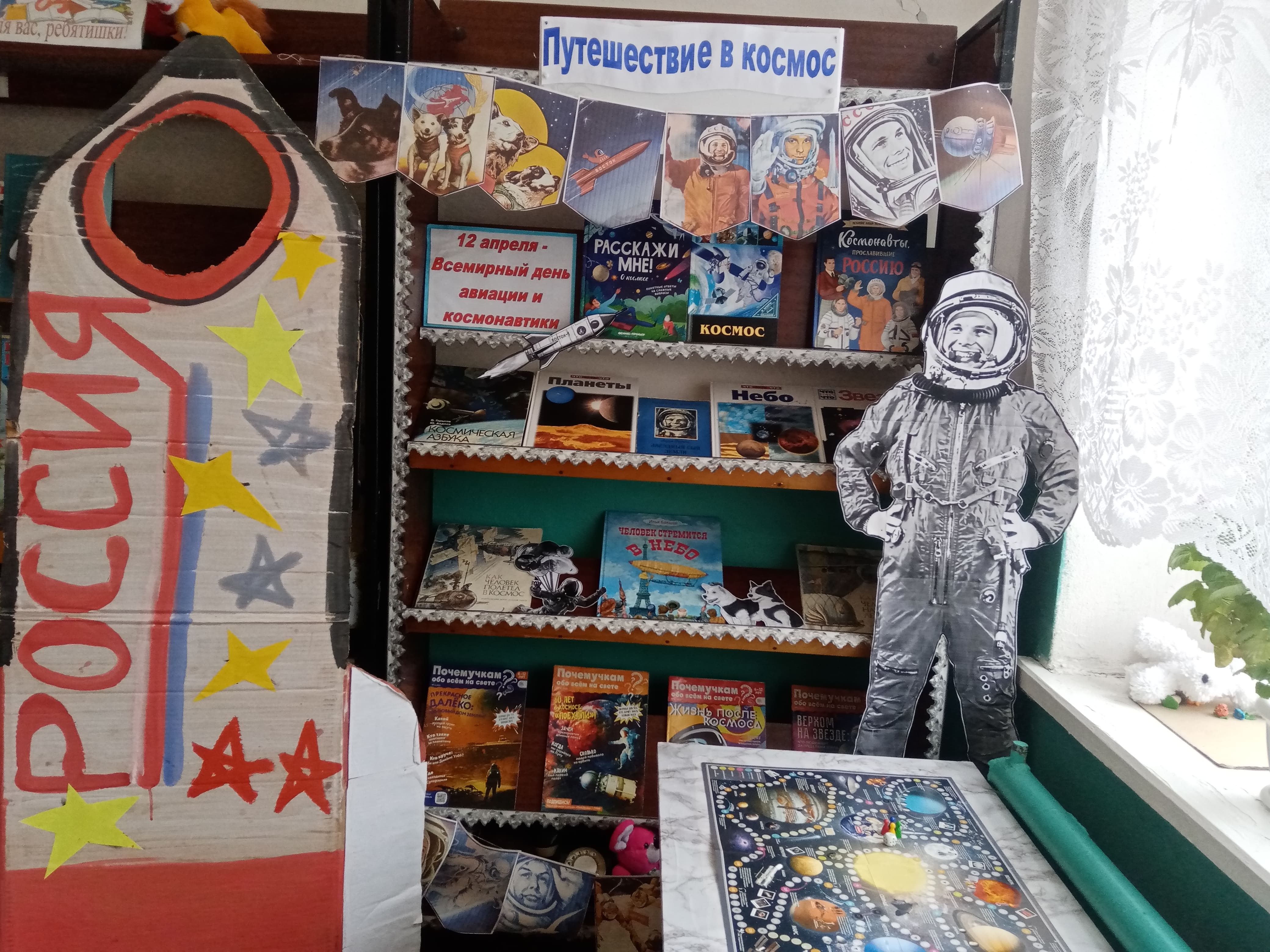 8 апреля для детей проведён обзор по книжной выставке «Путешествие в космос».
