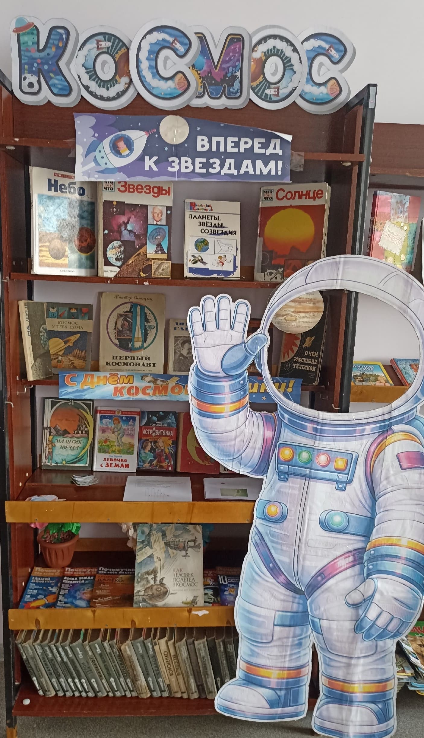 Всю неделю в Кордяжской СБФ №9 работала выставка-игра «Вперёд к звёздам». На выставке представлены книги о Гагарине, планетах и далёких галактиках, ещё на выставке можно было сделать фото на память – примерить «скафандр» и стать героем космического селфи и, конечно же, читателей библиотеки ждала интересная игра-викторина, где все желающие могли проверить свои знания и узнать новые интересные факты о космонавтике.
