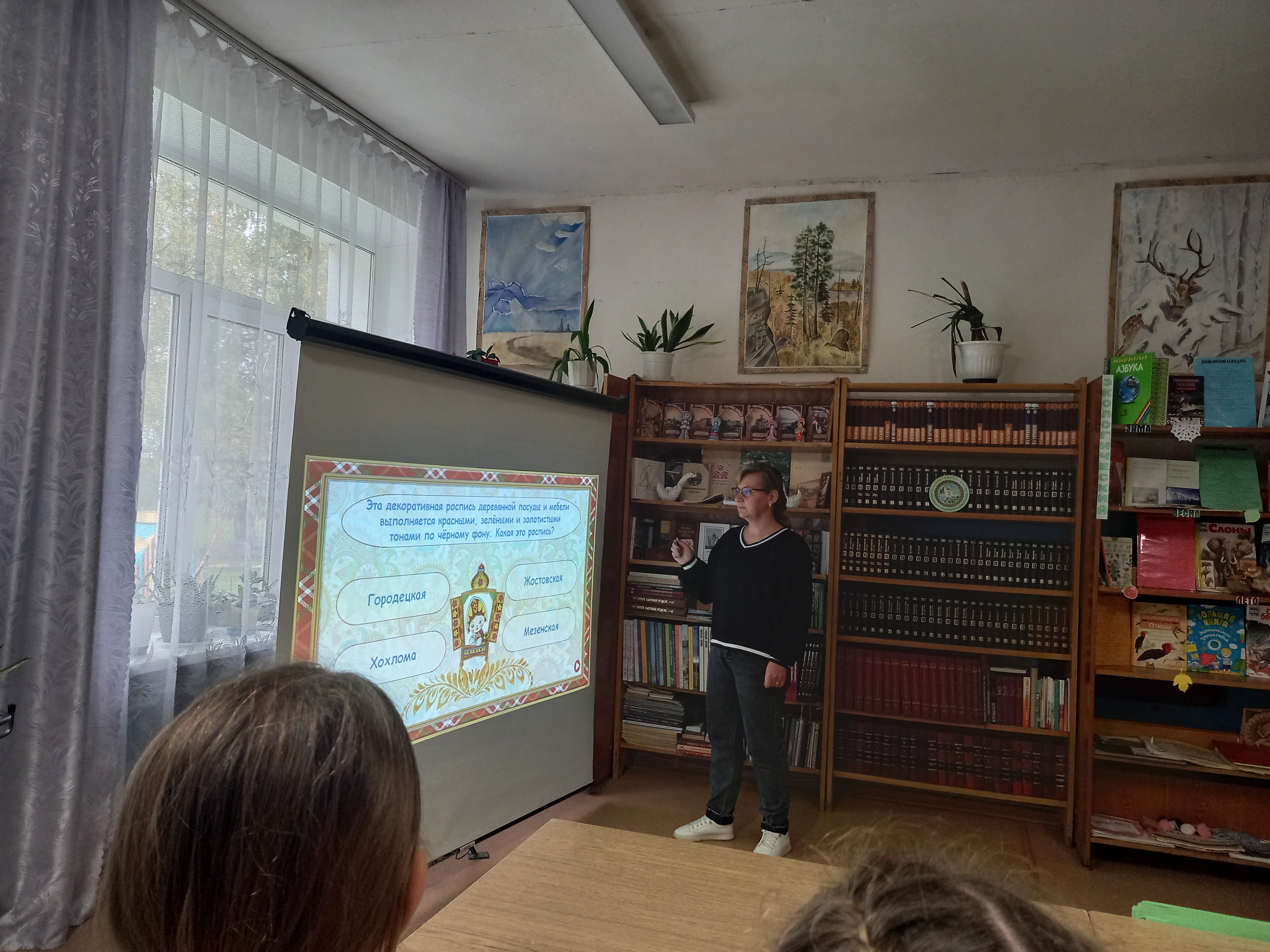 Народные промыслы России – огромное духовное богатство, которое доносит до нас культуру прошлых поколений. 15 сентября в Мухинской сельской библиотеке имени В.А.Архипова школьники поучаствовали в квизе «Народные промыслы». Участники поделились на две команды и продемонстрировали свои знания, выбирая ответы в интерактивной игре. Вопросы квиза были интересными и охватывали широкий спектр тем, позволяя участникам проявить себя с разных сторон. Они называли изделия самых известных русских промыслов, отгадывали виды росписи, определяли предметы народного ремесла, изготовленные из различных природных материалов, вспоминали местности, известные своими уникальными игрушками ручной работы. В ходе игры ребята узнали много нового и увлекательного о промыслах народов России.